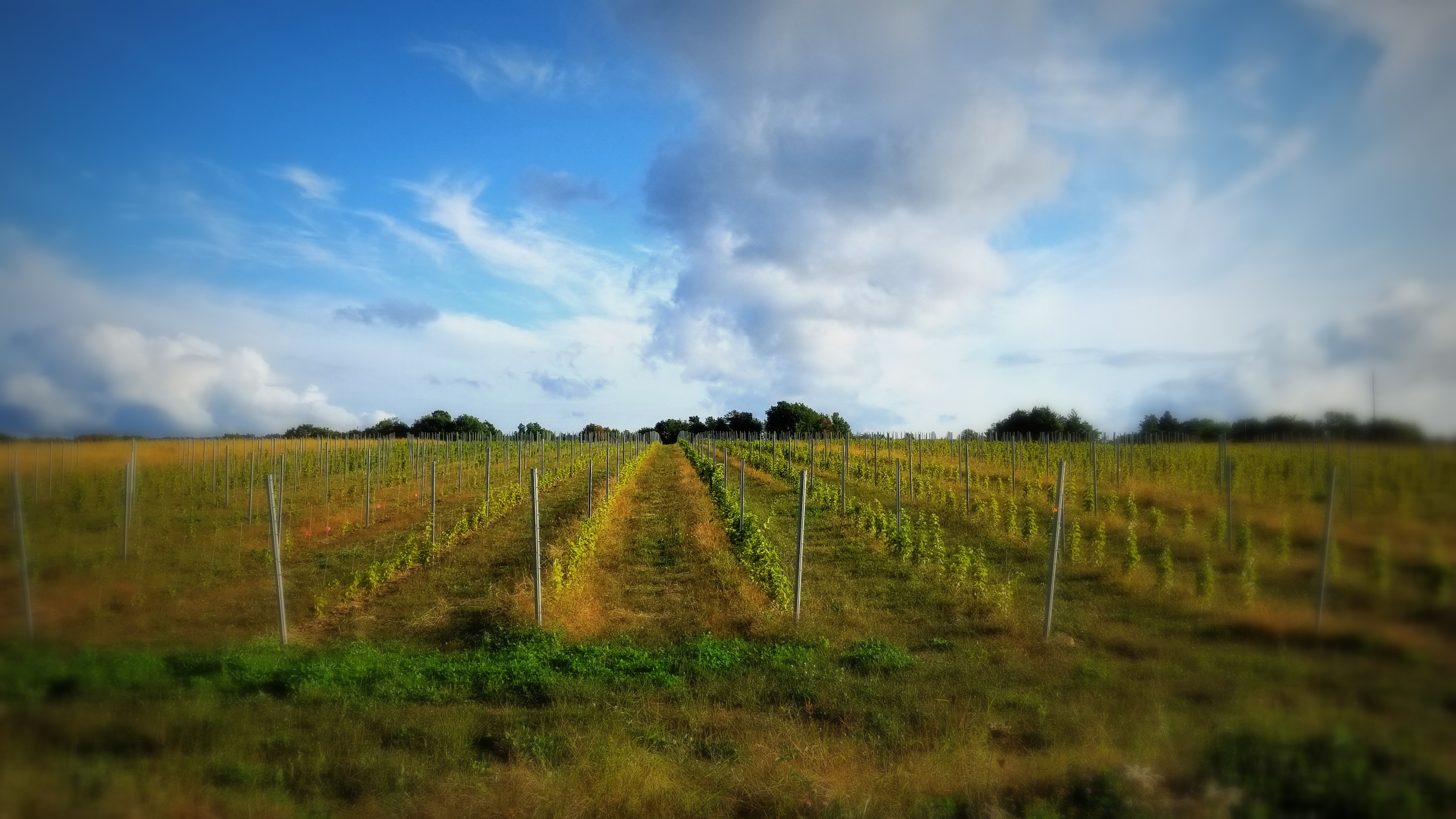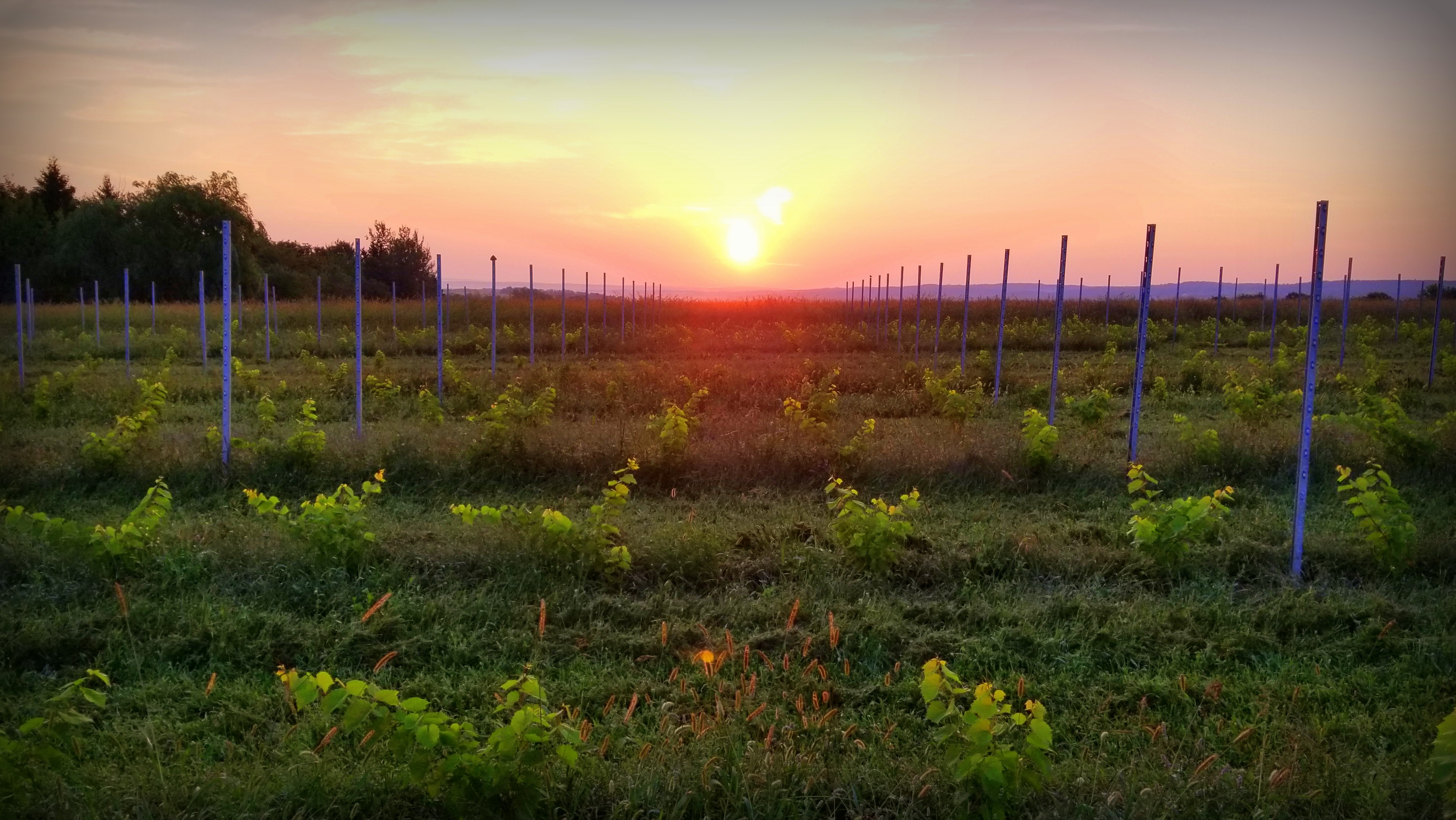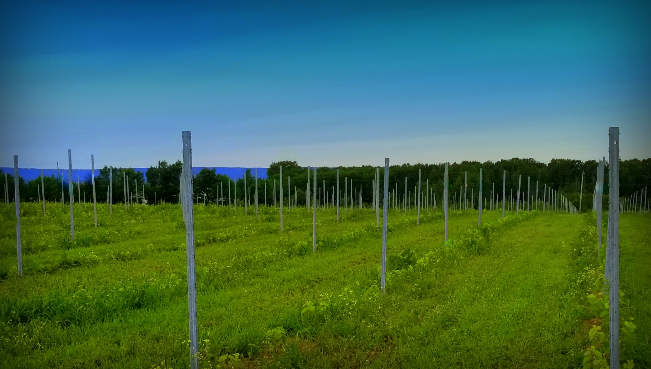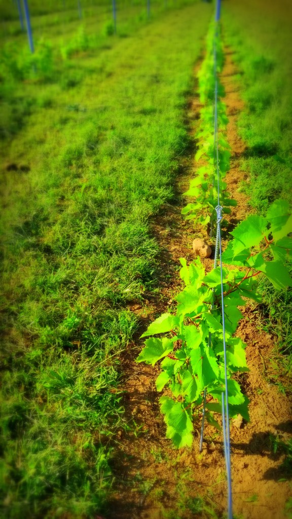 Needless to say it took us much longer then we anticipated to install al the posts. With a couple of breaks we finished installing the posts in August – with some left over that we had to manually fix later. Once the posts were finisher the fruiting wire was not much of a challenge to install manually – once we figured out how to prevent it from springing out and unwinding out of control.